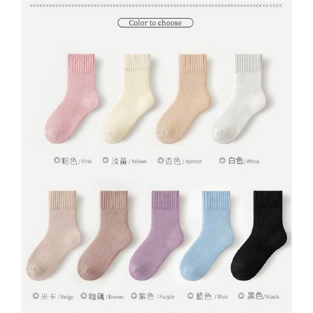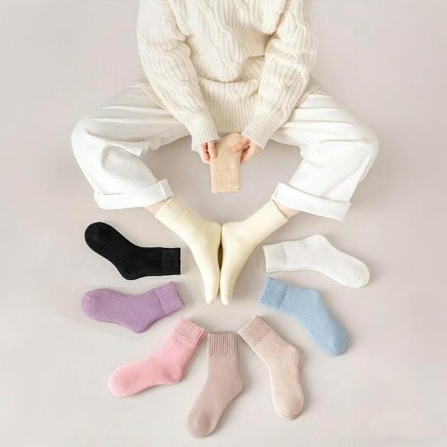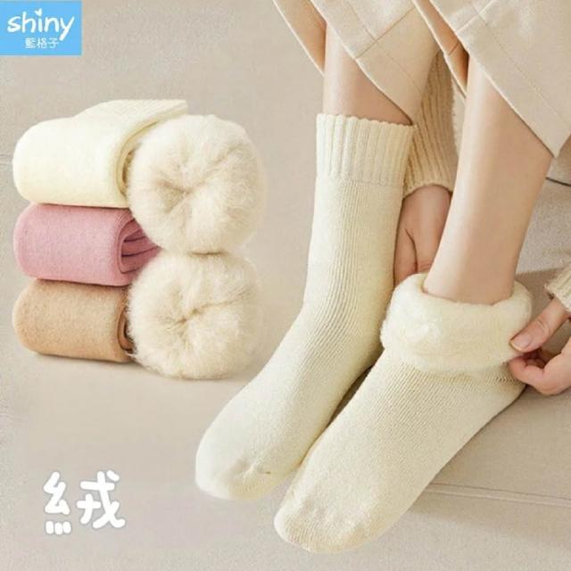 Shiny 藍格子溫暖舒適‧冬季加厚加絨素色保暖毛圈中筒襪 30A15(女襪 襪子)