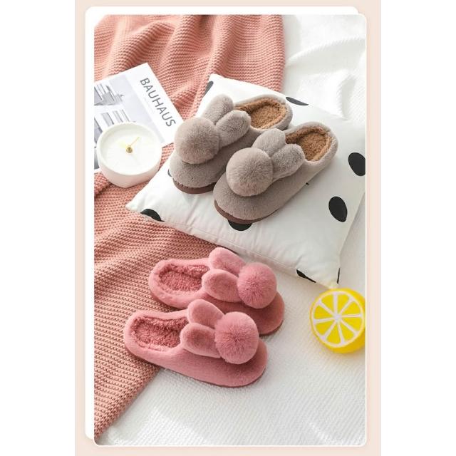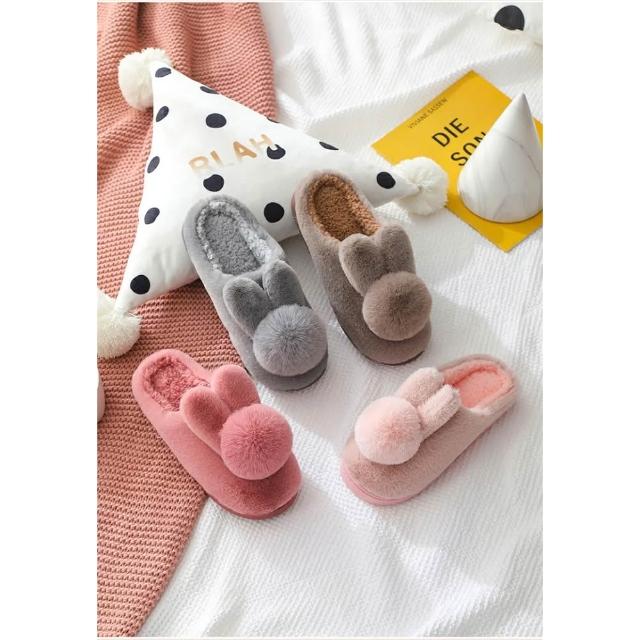 Shiny 藍格子立體可愛毛球厚底防滑拖鞋 X880(女鞋 居家)