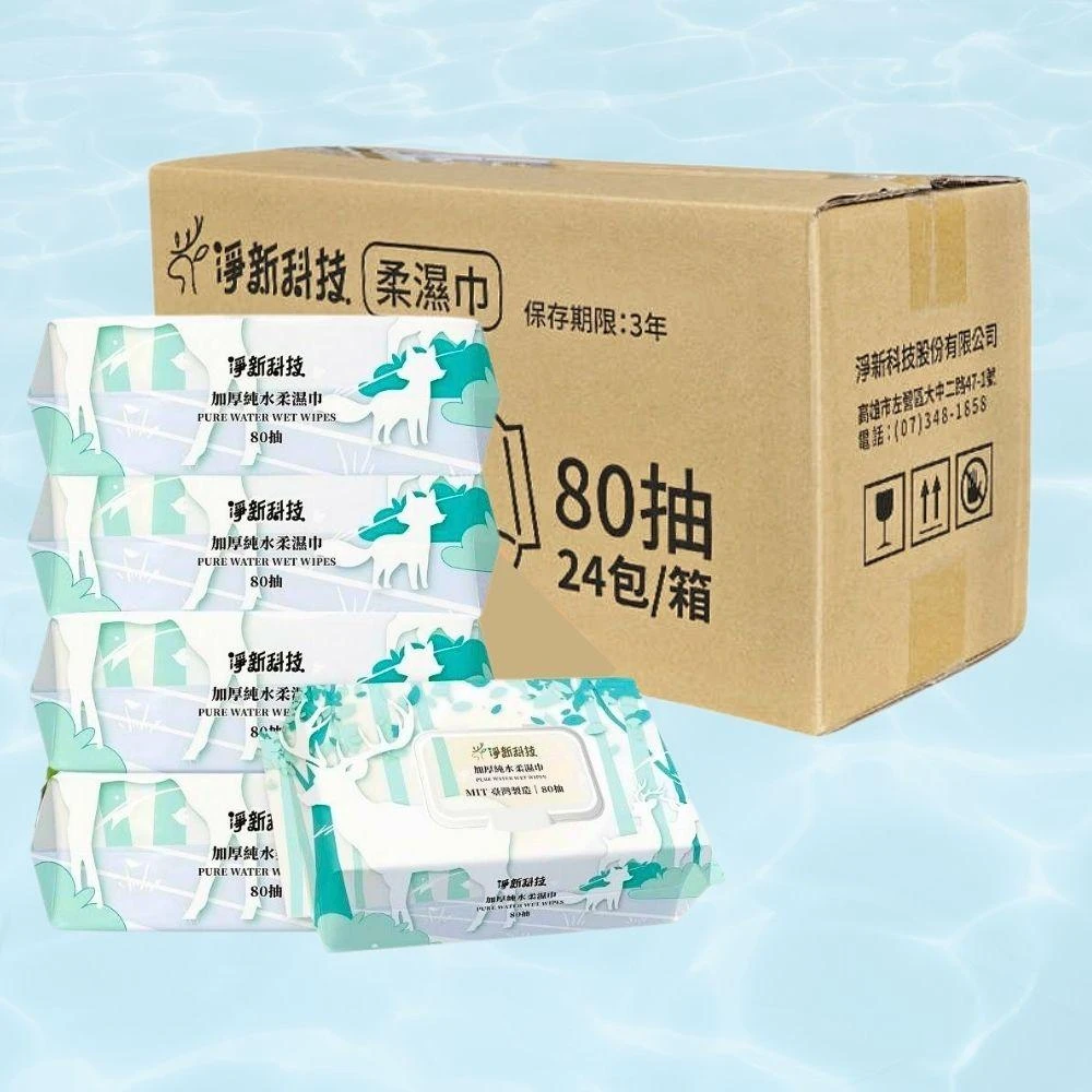 淨新加厚純水柔濕巾 80抽 箱購24入 (溼巾/潔膚溼巾/濕紙巾/加蓋純水濕紙巾/天真貝比柔濕巾)