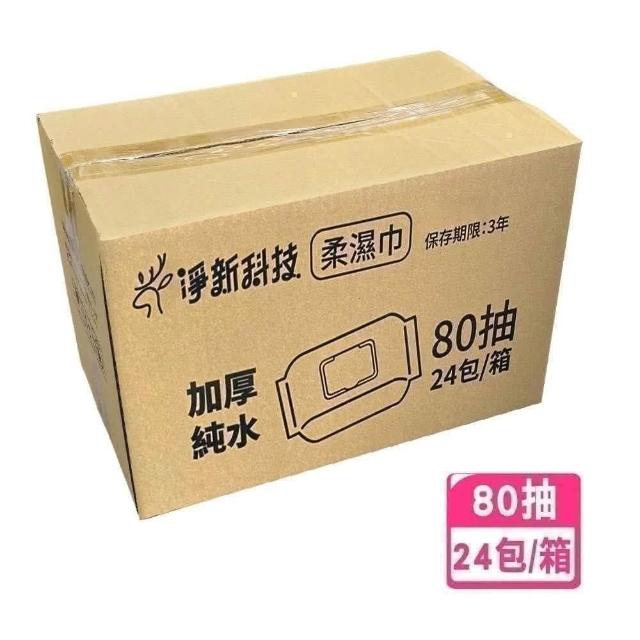 淨新加厚純水柔濕巾 80抽 箱購24入 (溼巾/潔膚溼巾/濕紙巾/加蓋純水濕紙巾/天真貝比柔濕巾)