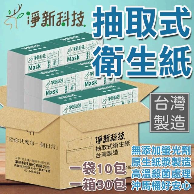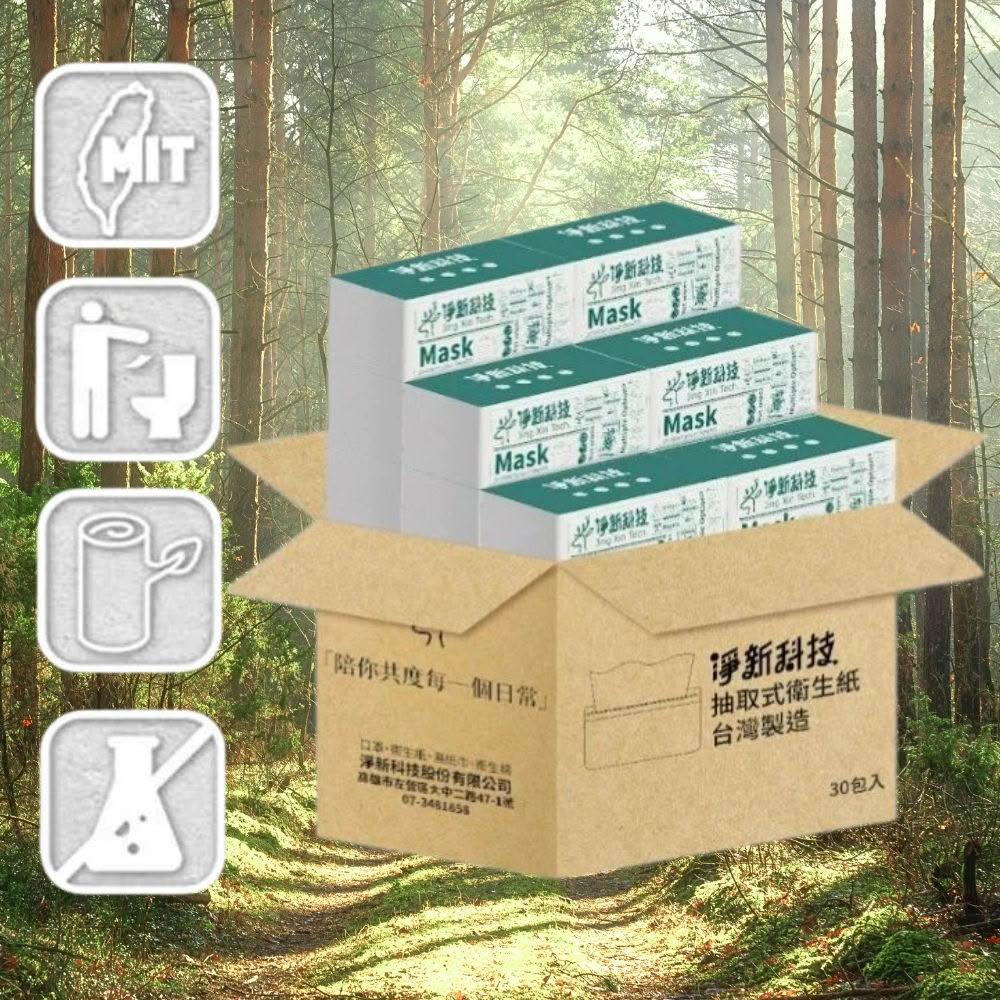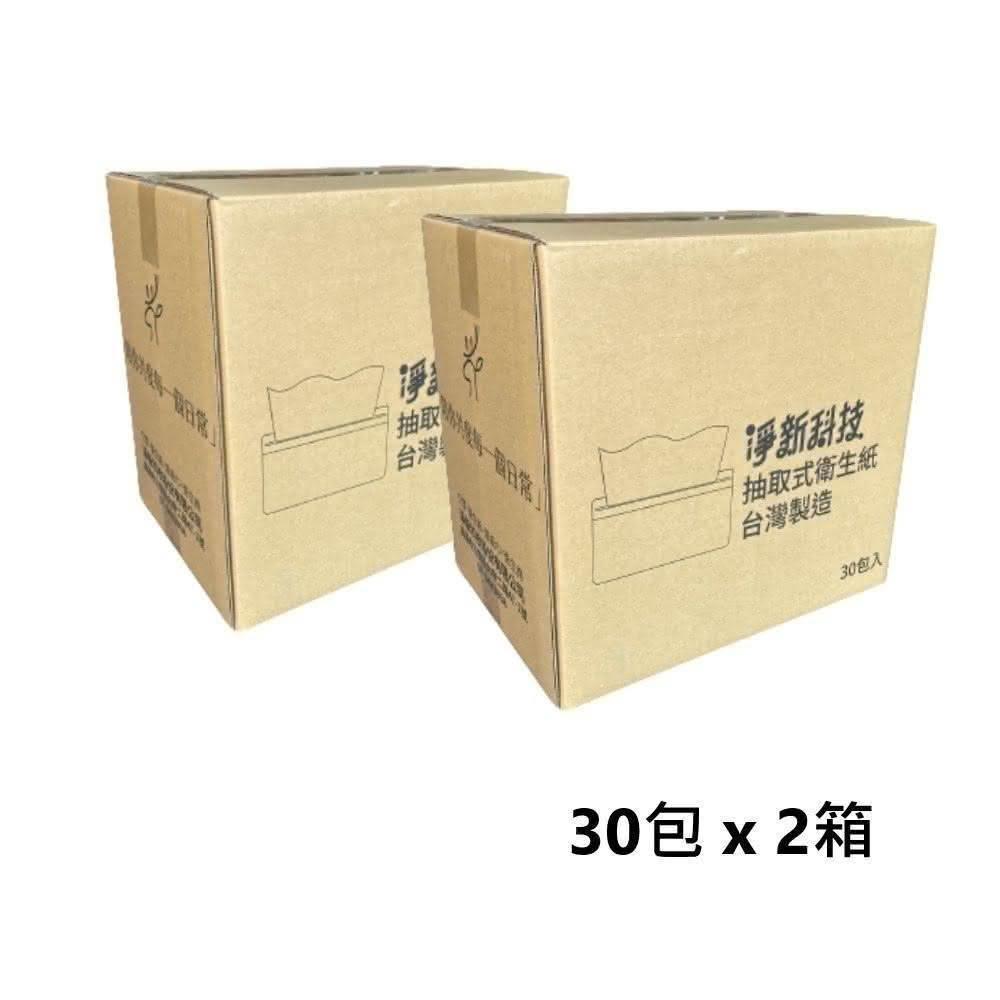 淨新抽取式衛生紙-100抽x30包x2箱(台灣製造/面紙/擦手紙/原生木漿/可沖馬桶)
