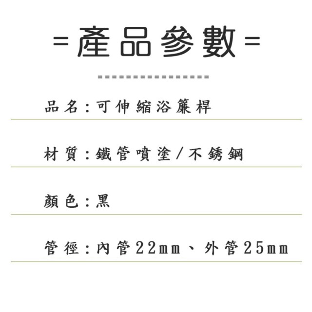 黑色浴簾桿 70-110CM伸縮桿 不銹鋼(窗簾桿/曬衣桿/衣櫃桿/門簾桿)