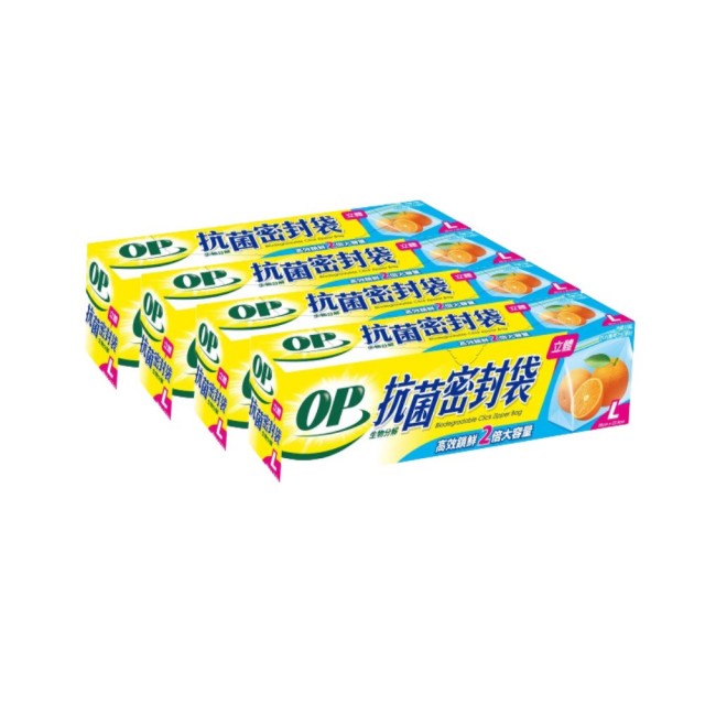 OP生物抗菌立體密封袋 4盒組(M/L 保鮮袋/防潮夾鏈袋/食物分裝袋)