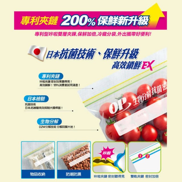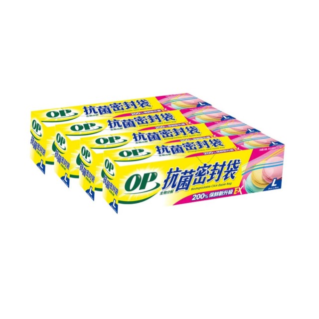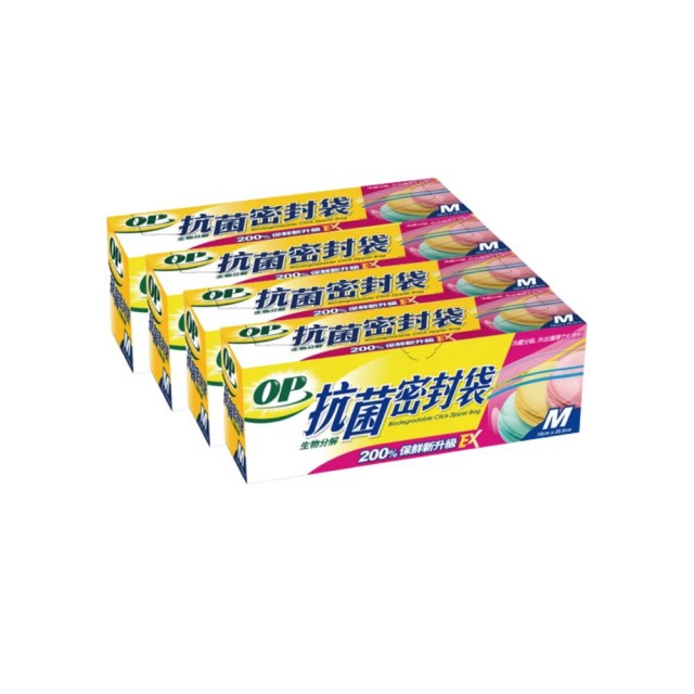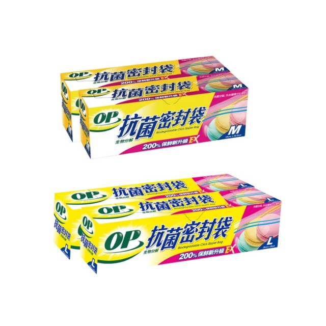OP生物分解抗菌密封袋 4盒組(M/L 保鮮袋/防潮夾鏈袋/食物分裝袋)
