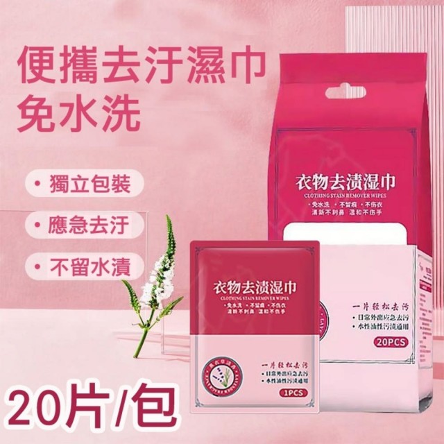 衣物去漬濕紙巾 5包(20片/包 除漬濕巾/外出應急/去汙濕巾/清潔濕紙巾)