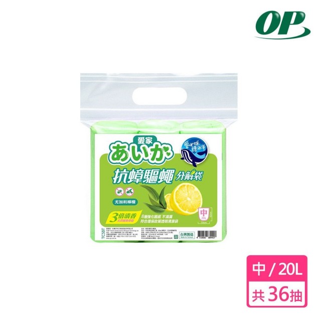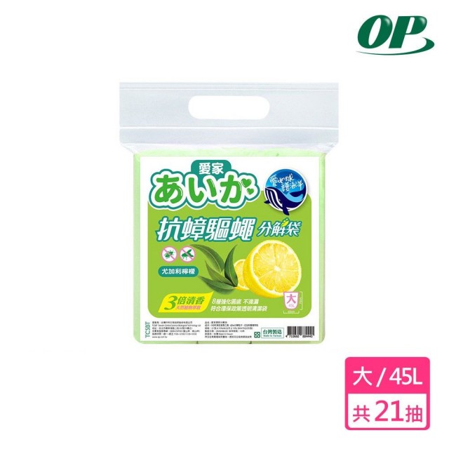 OP愛家 環保垃圾袋 清潔袋 檸檬/薰衣草 抗蟑驅蠅 5包售 環保分解袋(大45L/中20L/小15L)