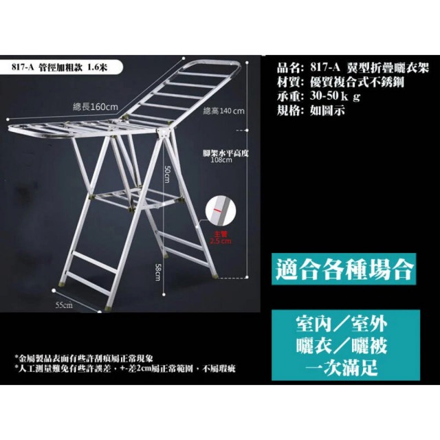 不鏽鋼翼型折疊曬衣架-管徑加粗 摺疊晾曬衣架(雙開曬衣架/落地型曬衣架/蝶形晾衣架)