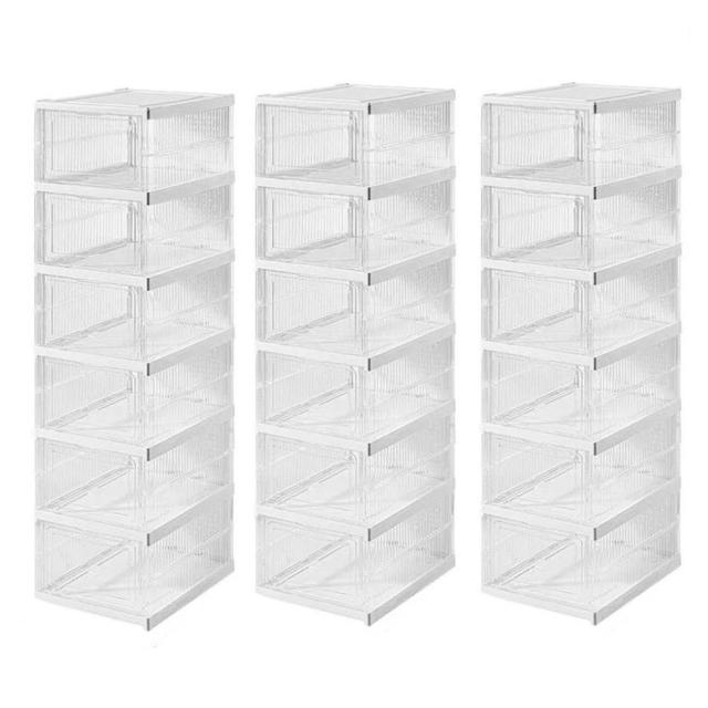 透明摺疊鞋盒-6層款 折疊鞋盒 3組售(鞋子收納盒/可加疊鞋盒/組合鞋櫃)