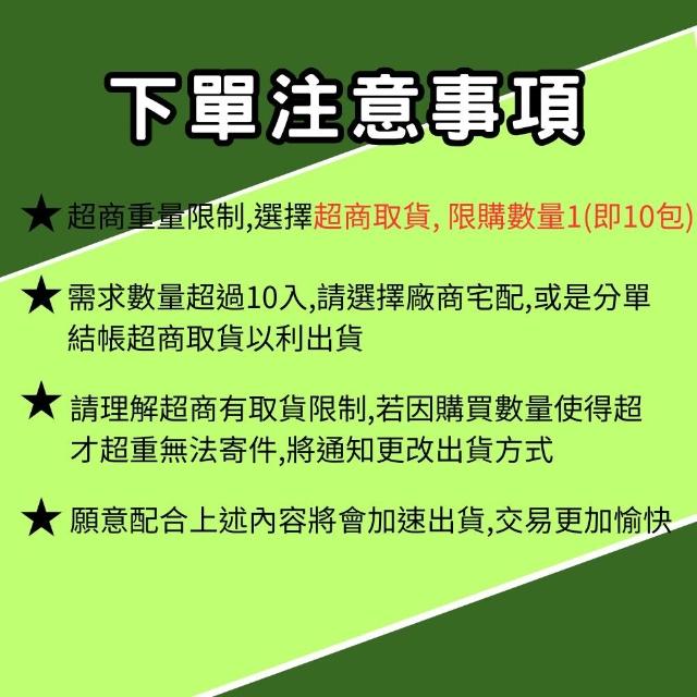 - 依照客戶指定配送之商品(約配商品)接獲訂單逾30日您未通知出貨及受領商品,為了保障您的權益,商店得取消訂單,請客戶重新下單購買。