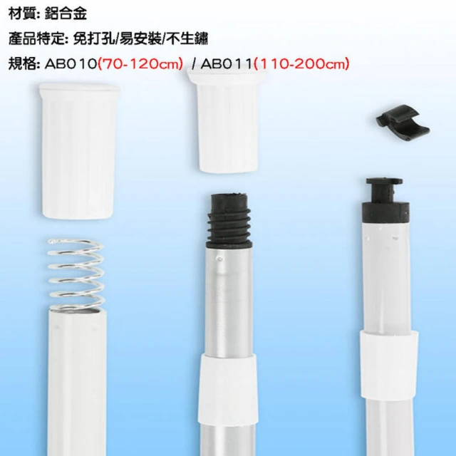 圓頭鋁合金浴簾桿 70-120cm(免打孔多功能伸縮桿/窗簾桿/門簾桿)