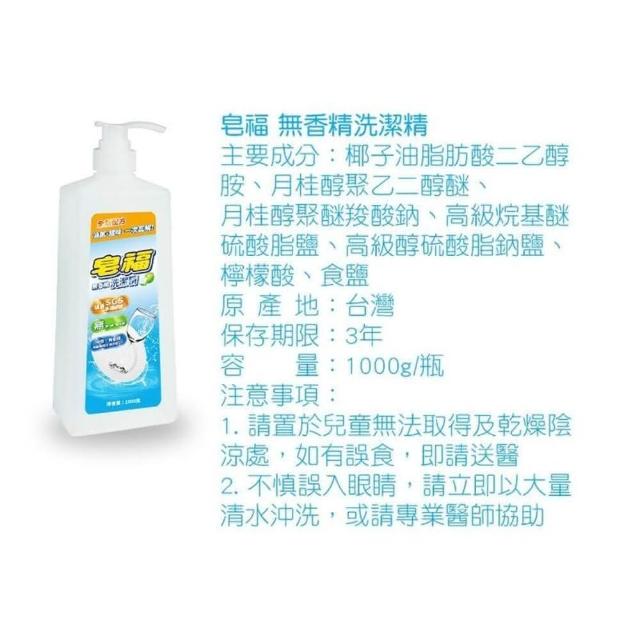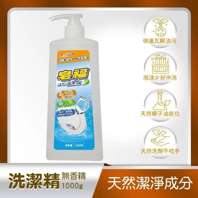 皂福無香精洗潔精 1000g/瓶(高效能洗碗精/天然洗潔劑/無螢光劑)