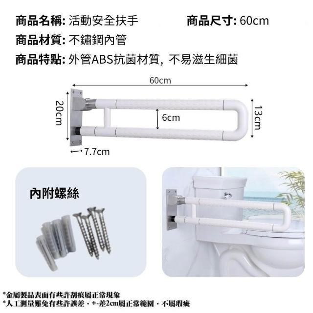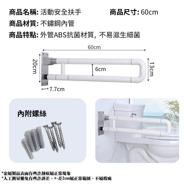 活動扶手 60cm上翻式 U型扶手(90°收折/安全扶手/馬桶扶手/浴室扶手)