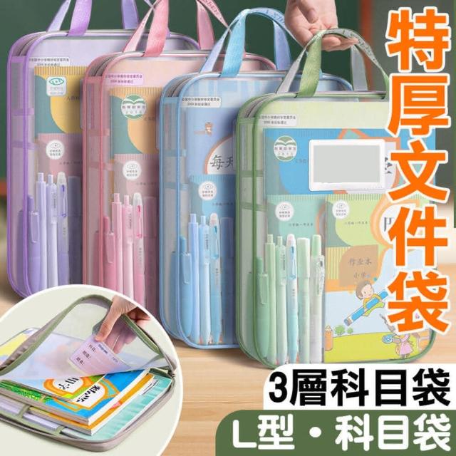 加厚文件袋 4入 A4網紗文件袋 手提文件袋 分類文件袋(L型開口袋/文具袋/書袋/手提/補習袋)