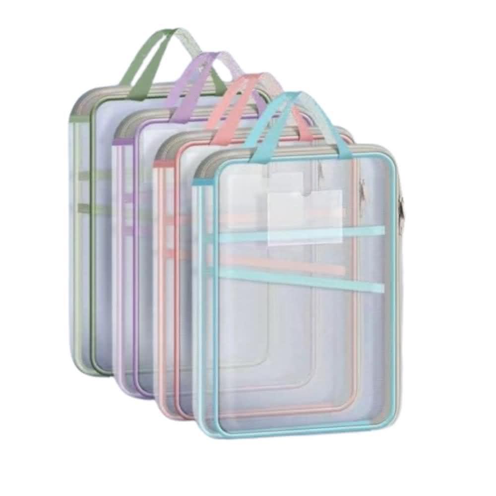 加厚文件袋 4入 A4網紗文件袋 手提文件袋 分類文件袋(L型開口袋/文具袋/書袋/手提/補習袋)