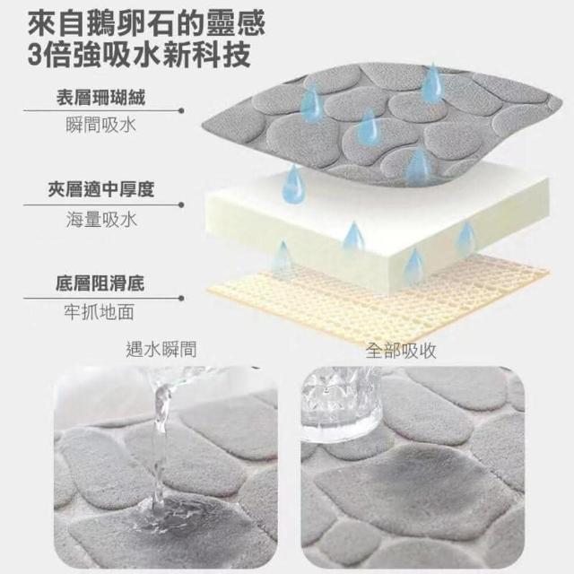 珊瑚絨地毯 鵝卵石地墊 40x60cm(吸水/回彈記憶棉/防滑門墊/浴室地墊/防滑墊/腳踏墊)