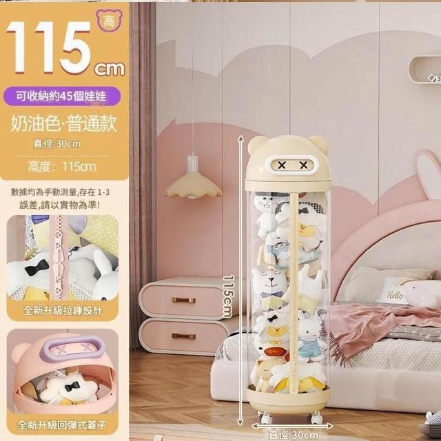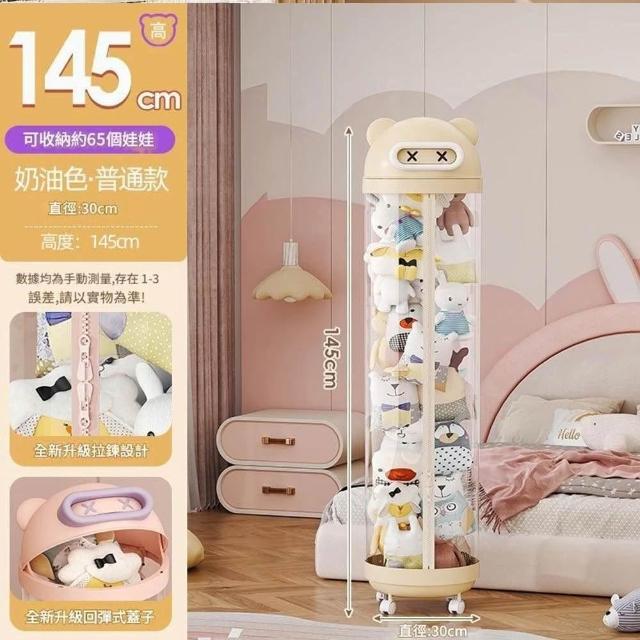 娃娃收納桶 透明收納筒 拉鍊設計 附萬向輪(直立式 大容量 玩具收納 兒童房整理 娃娃桶)