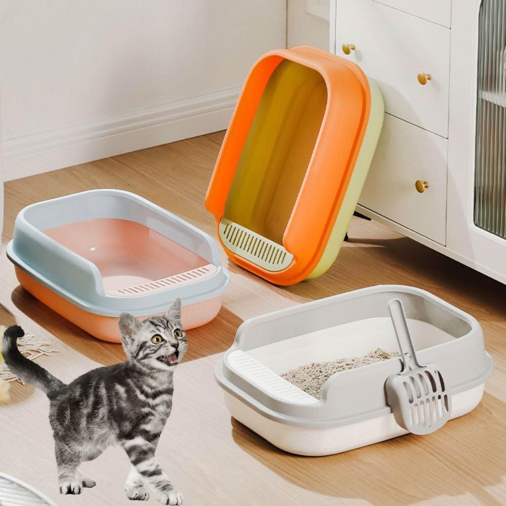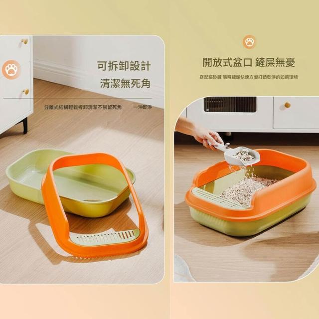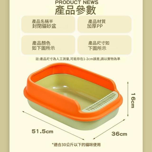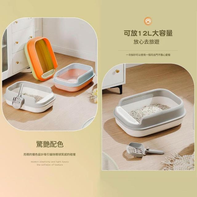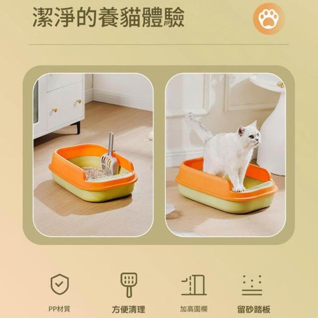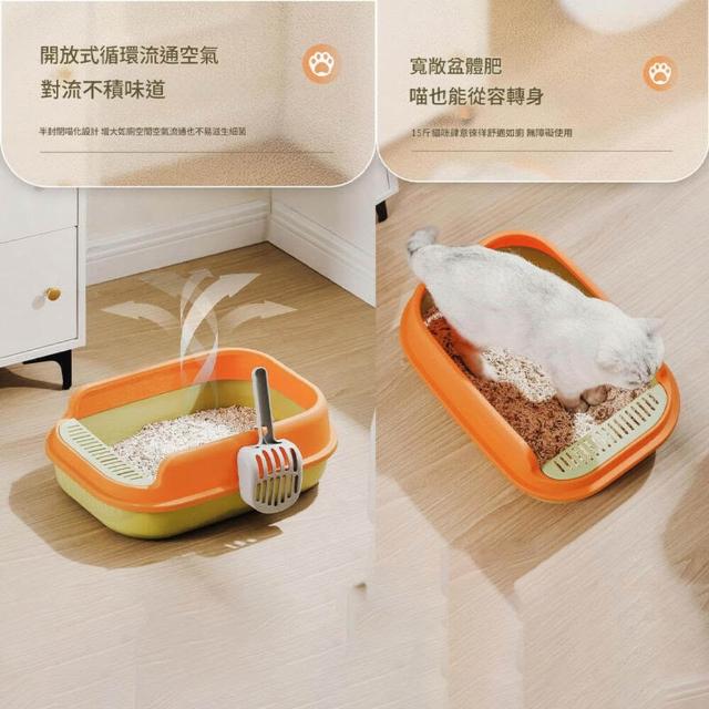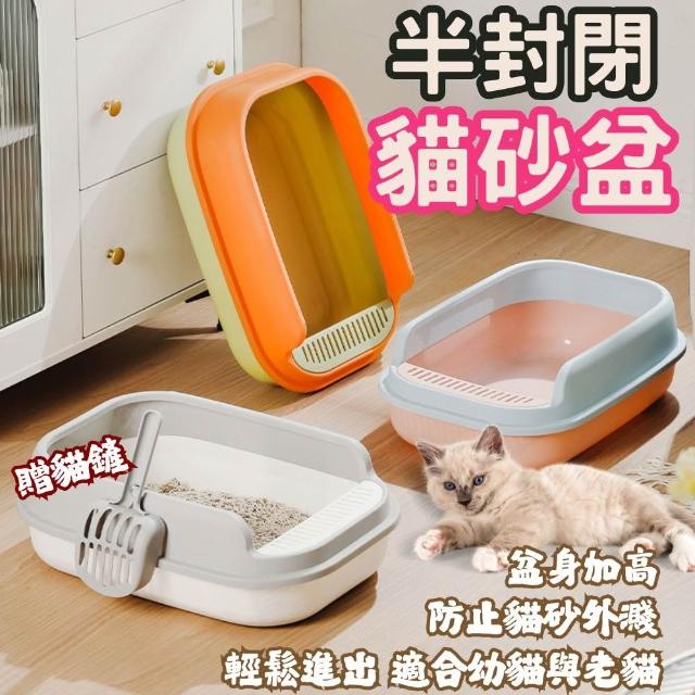 半封閉式貓砂盆 附贈貓砂鏟防噴濺 貓砂盆(可拆卸清洗/貓便盆/貓廁所/加高貓砂盆/加高圍欄)