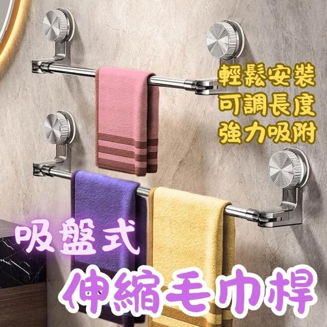 吸盤式伸縮毛巾架 免打孔吸盤毛巾架 30-118cm 浴室置物架(浴巾桿/毛巾架/伸縮架/拖鞋架)