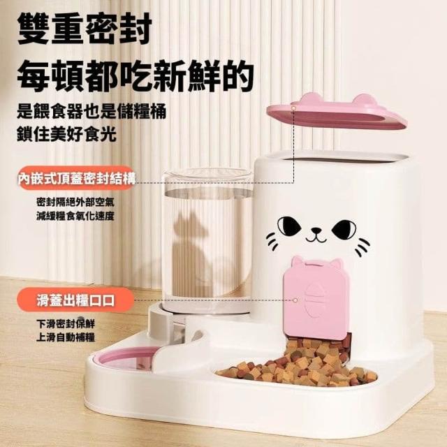 可愛貓咪造型自動餵食器|雙槽分離式飲水器+飼料機|大容量密封防潮|適用貓狗