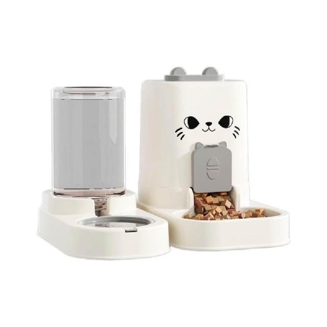 可愛貓咪造型自動餵食器|雙槽分離式飲水器+飼料機|大容量密封防潮|適用貓狗