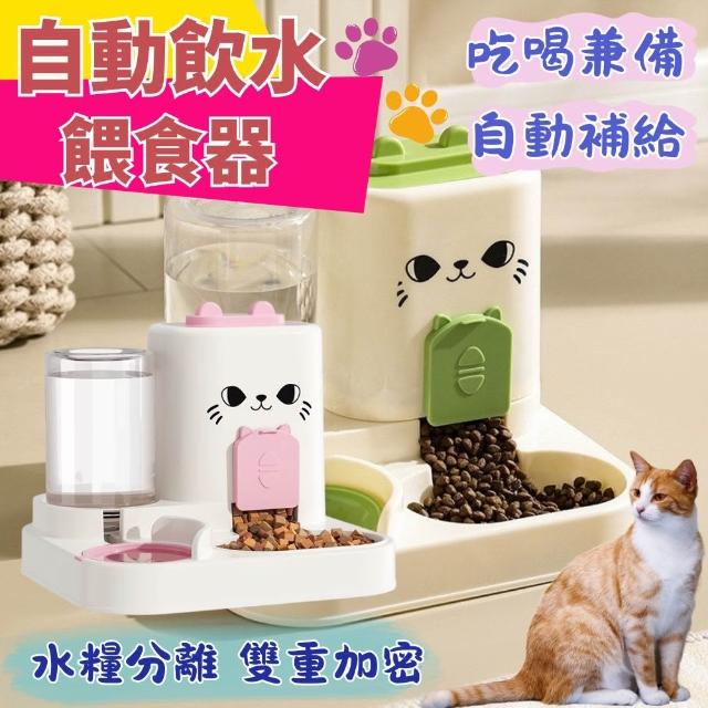 可愛貓咪造型自動餵食器|雙槽分離式飲水器+飼料機|大容量密封防潮|適用貓狗