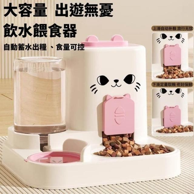 可愛貓咪造型自動餵食器|雙槽分離式飲水器+飼料機|大容量密封防潮|適用貓狗