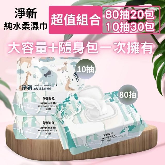 淨新加厚純水柔濕巾 超值組合(80抽20包+10抽30包 濕巾 濕紙巾)