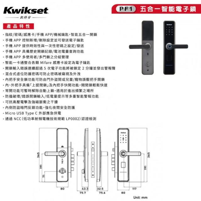 Kwikset 凱特安智慧電子門鎖 歐規鎖匣式 五合一(手機APP/密碼/卡片/指紋/鑰匙 智能電子鎖)