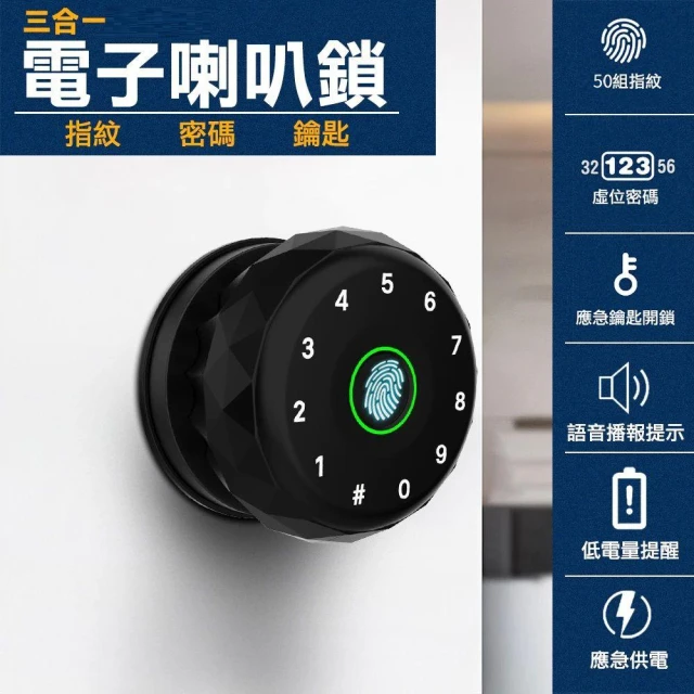 三合一電子鎖 喇叭鎖 指紋鎖 智能鎖(密碼鎖/智慧鎖/房間鎖/防盜鎖)