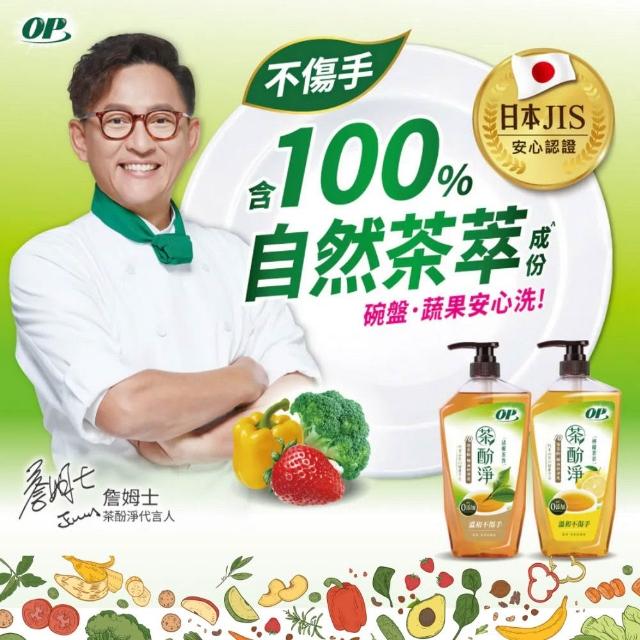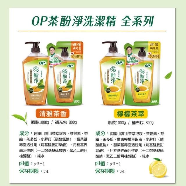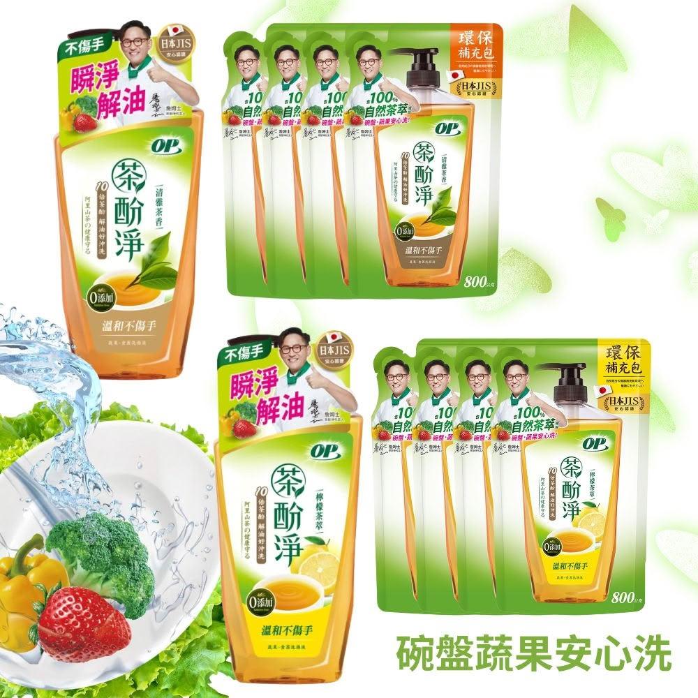 OP茶酚淨 可洗蔬果洗潔精 1瓶+4補充包 檸檬茶萃/清雅茶香 |共5件組