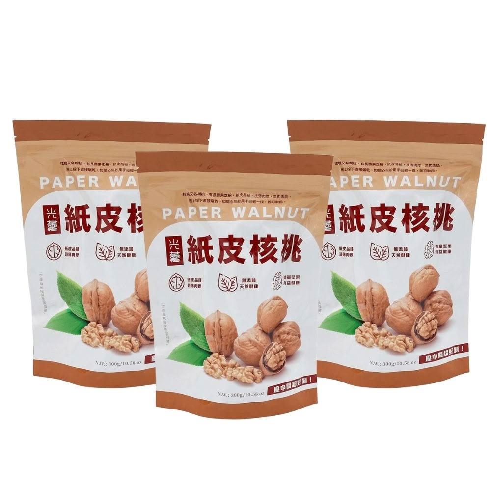 Guang Xun 光薰原味紙皮核桃300g*3包(里仁同款 無農藥烤核桃 百大伴手禮盒 送禮推薦 原味堅果 健康胡桃)