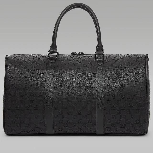 NIKE 耐吉JORDAN喬丹Monogram黑色行李包 滿版印花大容量行李袋裝備袋多收納登機旅行包袋(JD2443027AD001)