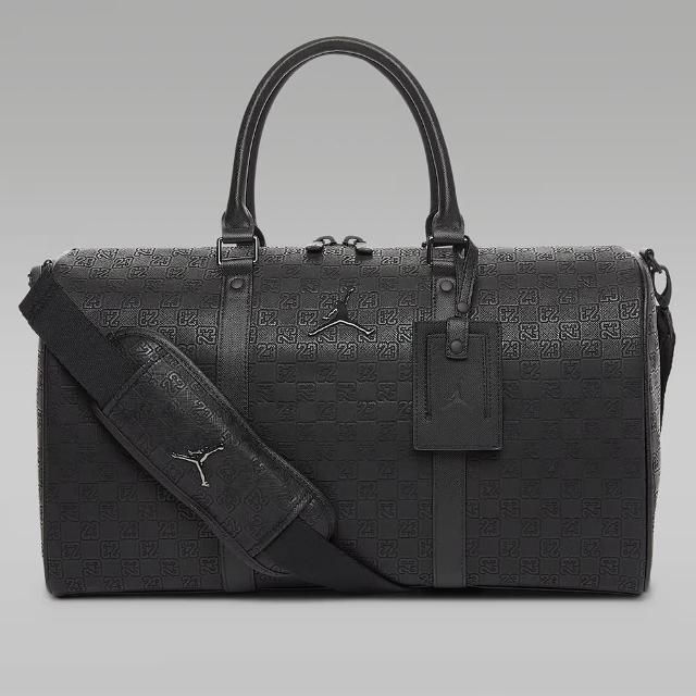 NIKE 耐吉JORDAN喬丹Monogram黑色行李包 滿版印花大容量行李袋裝備袋多收納登機旅行包袋(JD2443027AD001)