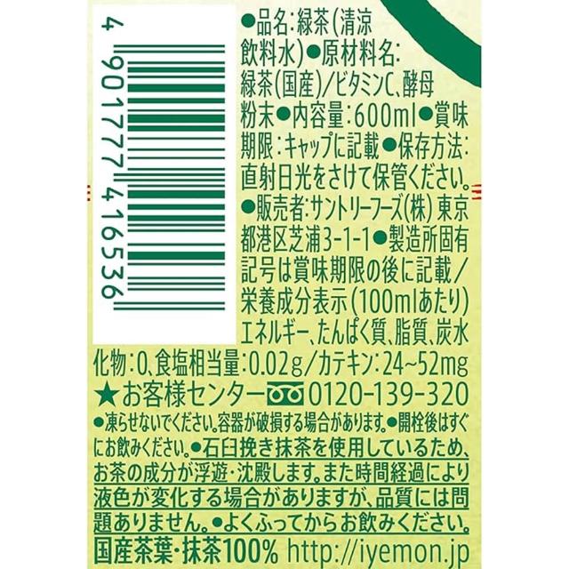 Suntory 三得利IYEMON伊右衛門京都福壽園新茶春茶600ml日本原裝進口即飲綠茶無糖綠茶無糖抹茶無糖茶無糖飲料不含糖飲料