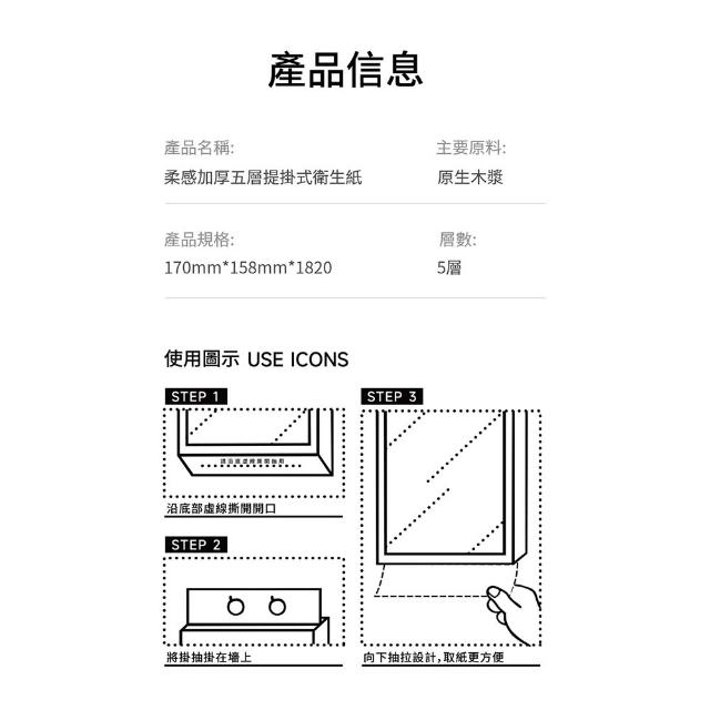韓戈Hoargger 提掛式五層厚實設計衛生紙 紙巾 廚房廁所面紙 1820張(原生木漿 無螢光劑 可溶性)