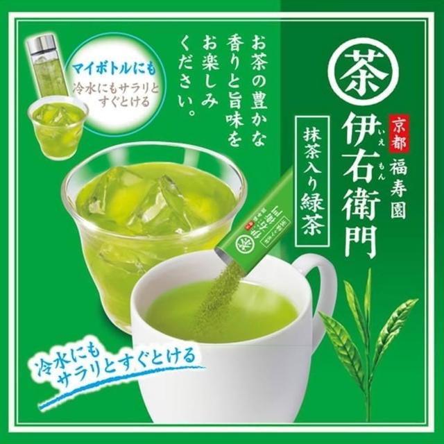 宇治の露伊右衛門京都福壽園抹茶綠茶粉(0.8gX30包/盒)冷泡茶熱泡茶涼茶熱茶溫茶開會茶熱沖冷沖超極細粉末速溶茶粉即溶