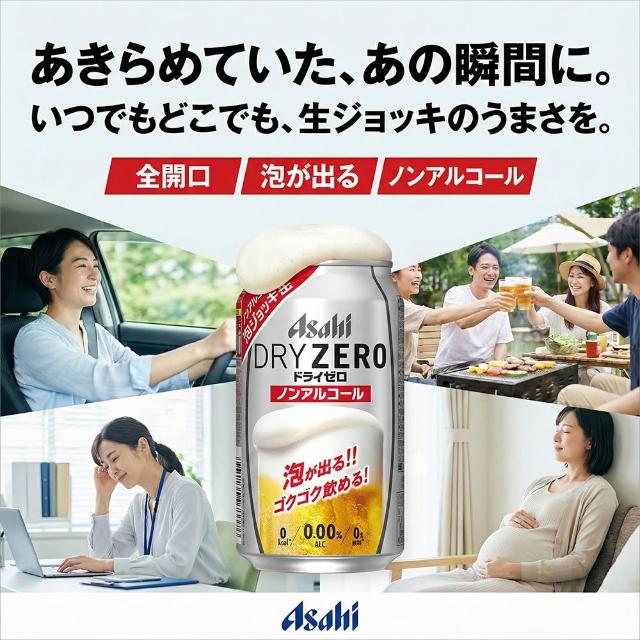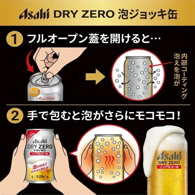 ASAHI 朝日DRY ZERO無酒精生啤酒泡泡罐340ml/罐 日本原裝進口碳酸飲料零酒精生啤綿密泡沫0糖0卡減醣汽水露營氣泡水氣水