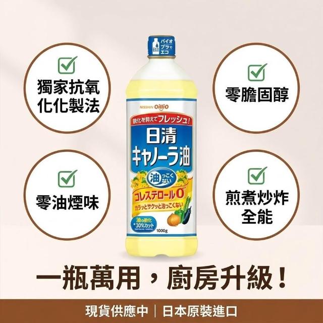 NISSIN 日清oillio菜籽油1000g/罐日本原裝進口零膽固醇抗氧化耐高溫高熔點清爽食用油芥花油炸物炒菜烘焙萬用油廚房必備