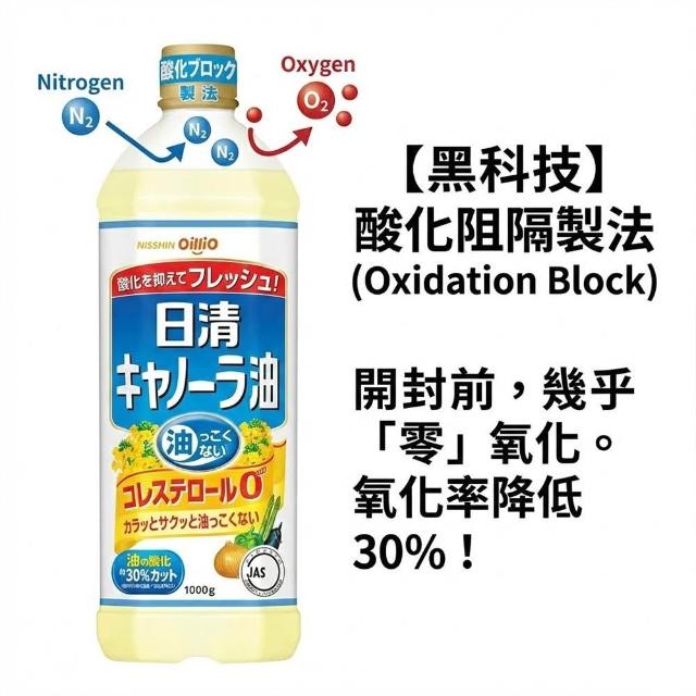 NISSIN 日清oillio菜籽油1000g/罐日本原裝進口零膽固醇抗氧化耐高溫高熔點清爽食用油芥花油炸物炒菜烘焙萬用油廚房必備