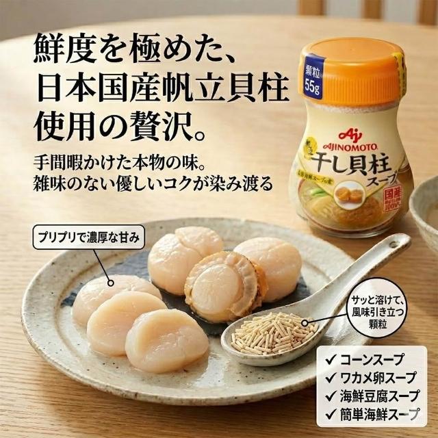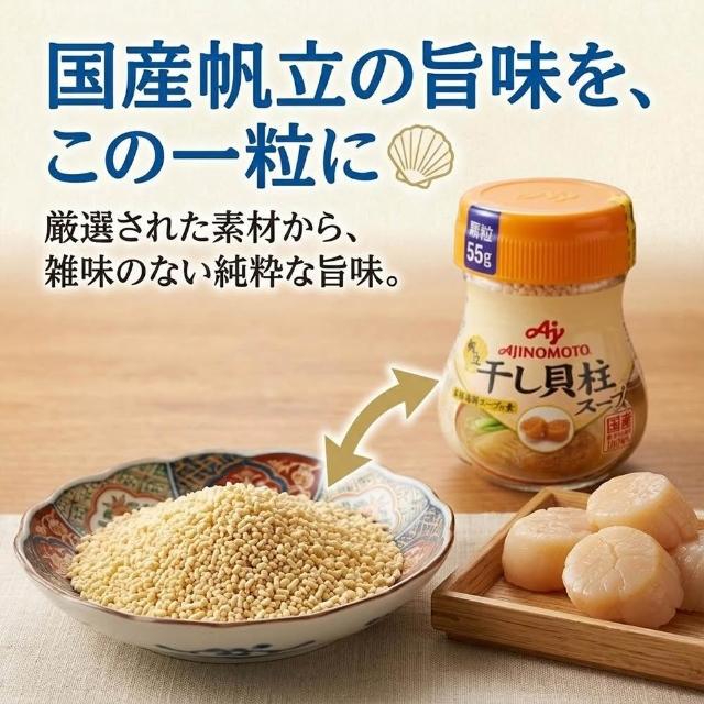Ajinomoto 味之素3罐入 干貝風味調味粉55g/罐日本原裝人氣速溶高湯粉即溶調味料湯品調味海鮮濃縮精華鮮甜提味炒菜煮湯煲湯廚房料理必備