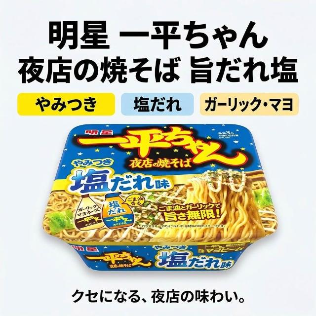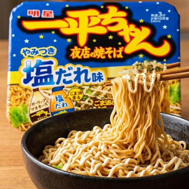 明星食品一平夜店蒜香鹽味炒麵130g/碗日本原裝進口特製鹽醬濃郁香蒜宵夜速食麵乾麵方便麵泡麵下午茶零食露營美食