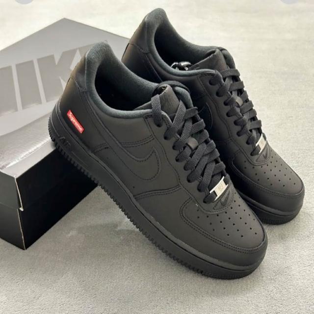 NIKE 耐吉SUPREME X NIKE AIR FORCE 1 全黑 紅標 男女鞋 聯名款 休閒鞋 CU9225-001