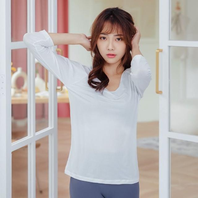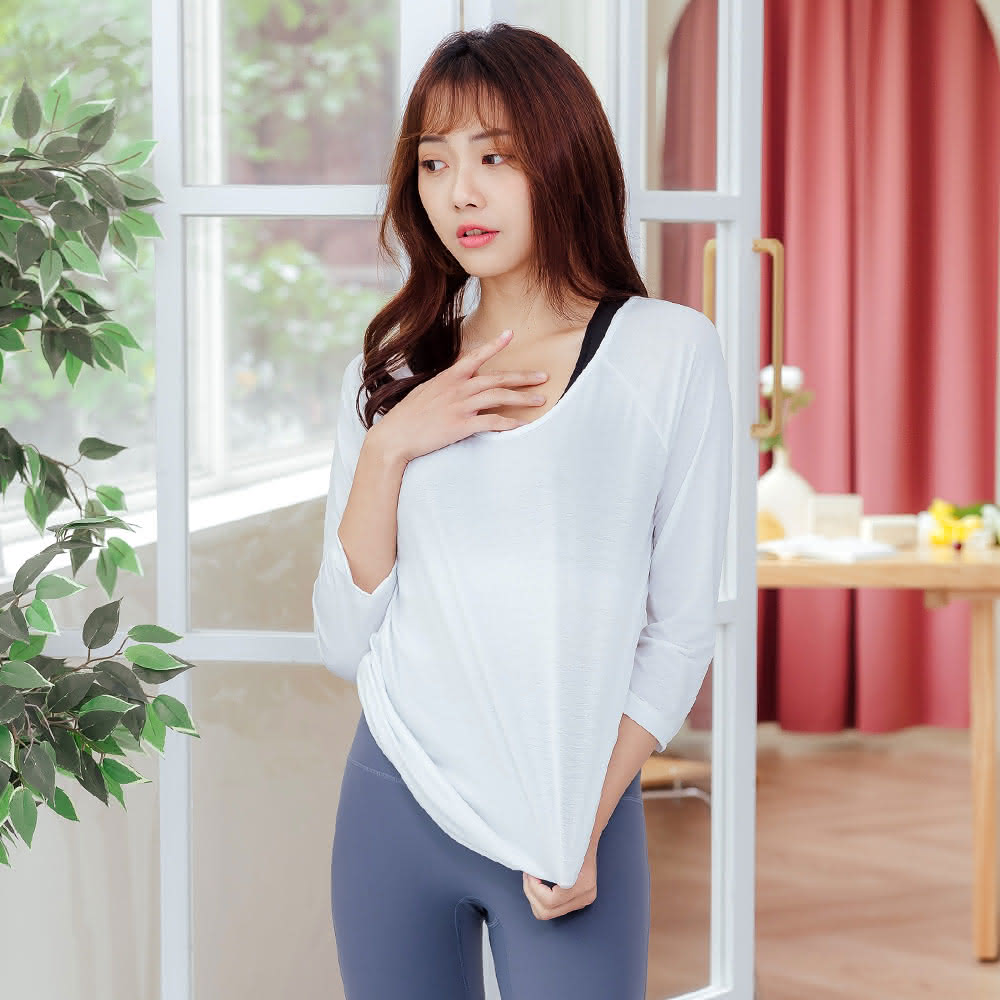 NEONER彈性顯瘦修身超輕薄透氣七分袖圓領T恤-白(透氣、七分袖、外搭衣、輕薄上衣)