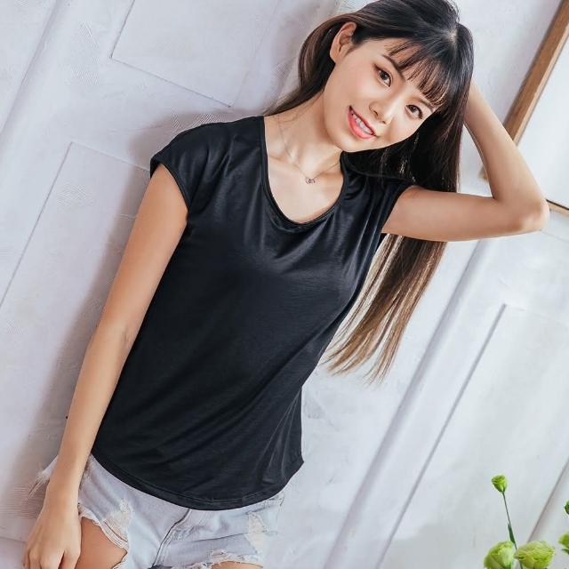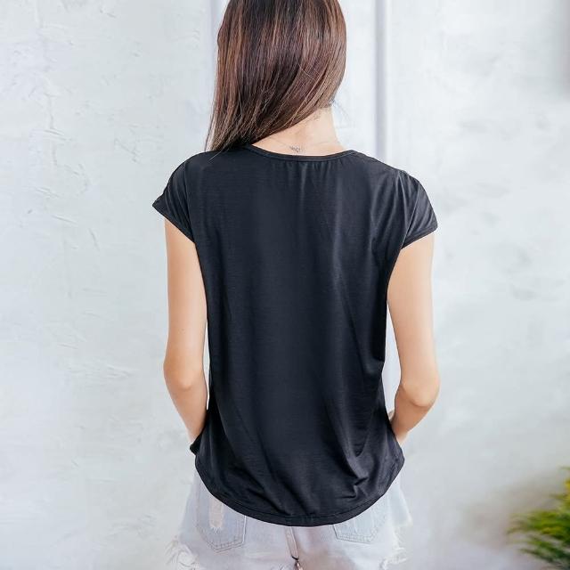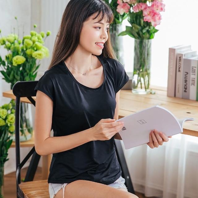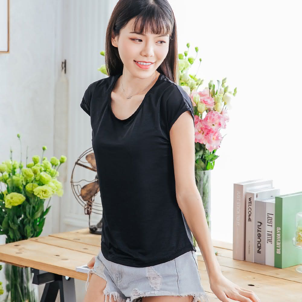 NEONER超細親膚透氣包袖圓領T恤-黑色(透氣、包袖、外搭衣、輕薄上衣、T恤)
