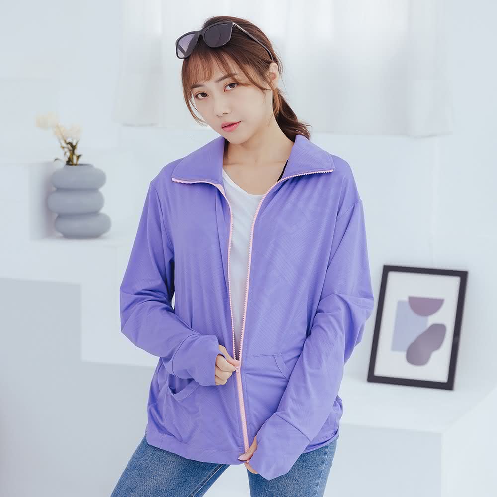 NEONER男女同款抗UV吸排立領外套活力紫(抗UV、防曬、外套)
