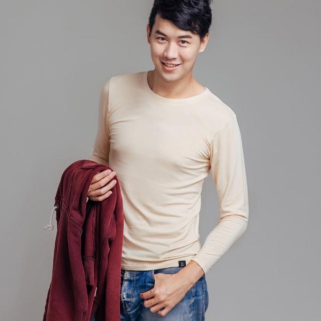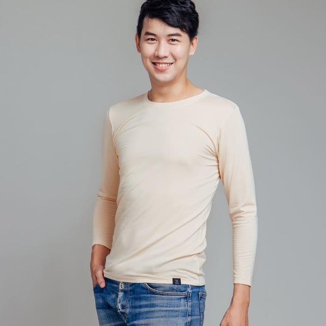 NEONER男圓領輕薄彈力氣暖絨發熱保暖內搭衣米色(發熱衣、輕刷毛、保暖衣、衛生衣)