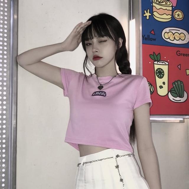 D.studio韓版字母黑色修身顯瘦短版上衣短袖上衣 短袖t恤 女裝 顯瘦上衣 衣服 T427