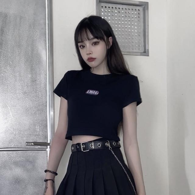 D.studio韓版字母黑色修身顯瘦短版上衣短袖上衣 短袖t恤 女裝 顯瘦上衣 衣服 T427