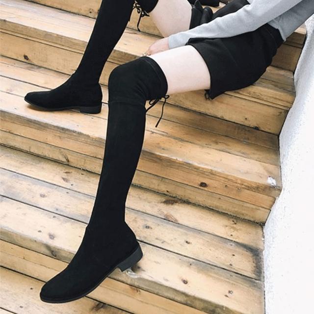 D.studio韓版毛絨高筒絨面過膝靴過膝長靴 騎士靴 靴子 鞋子 長靴 O115