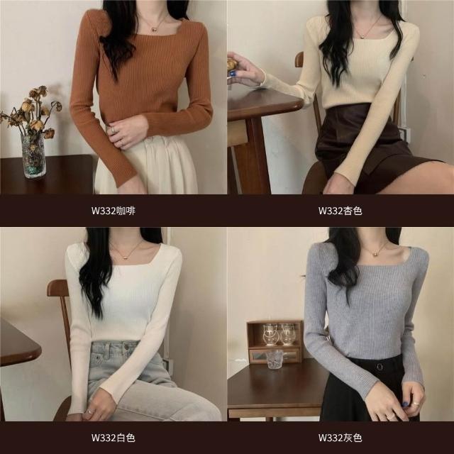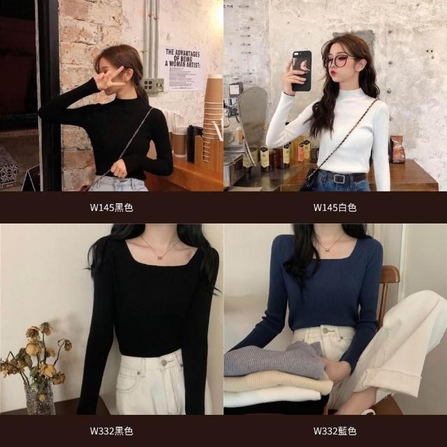 D.studio三件組 韓版溫柔風半高領彈性顯瘦針織上衣毛衣長袖上衣女裝衣服顯瘦上衣長袖t恤冬裝 發熱衣 W145 W332